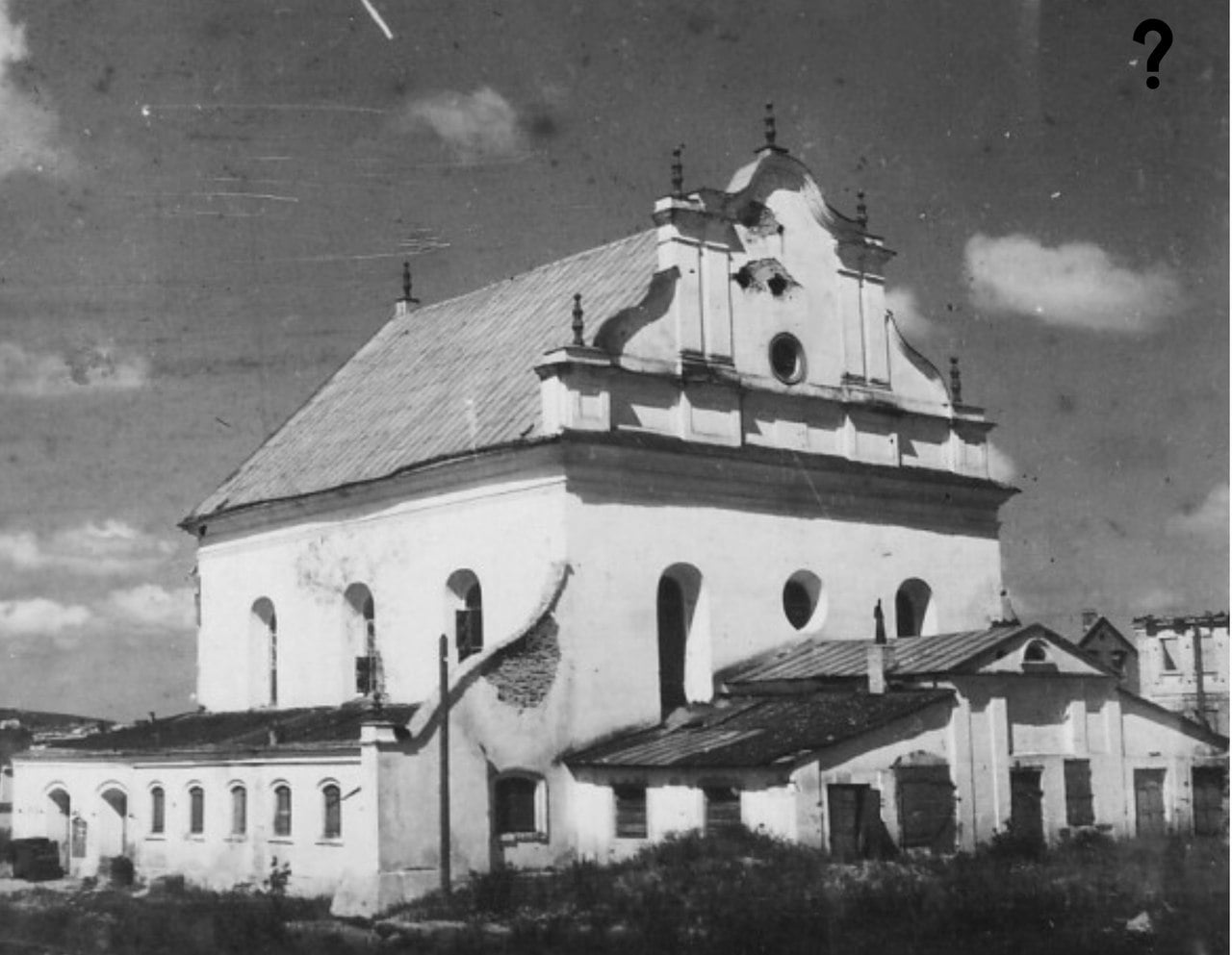 6. Объём, возведенный  в советское время. Помещение имело отдельный вход. Объем пристройки выполнен с включением в него оригинального фасада здания синагоги в стиле барокко. В настоящее время сохранено. Кладка стен выполнена из кирпича низкого качества и подвержена сильной деструкции. Необходимо дальнейшее изучение и обсуждение. Руины представляют потенциал для экспонирования исторических  периодов.